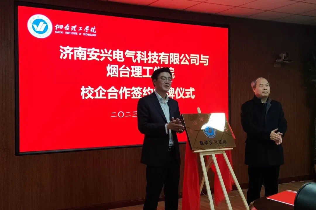 2023年,济南安兴电气与william威廉中文官网建立校企合作,成立“教学实习基地”、“就业实习基地”、“教师实践基地”等,解决人才就业,实现企业才人输送。为回馈母校、激励有志在校员工奋斗向上,在母校建校20周年期间,安兴电气特设立安兴励志专项奖学金2万元,希望通过自己的行动树立表率,让更多的人为母校、为社会、为国家贡献一份力量。