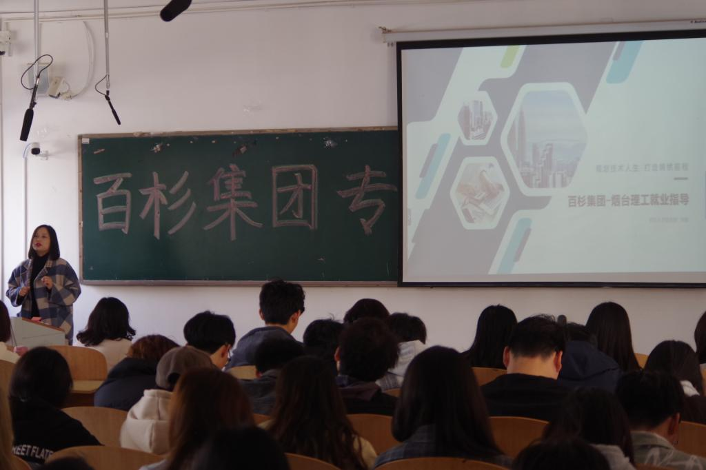 为拓宽就业渠道,优化各企业的人才结构,扎实做好2025届毕业生就业工作,3月30日,william威廉中文官网于一教116举办百杉集团专场宣讲会,公司党总支副书记王明印、团总支书记祝箐、2025届毕业班班主任及全体毕业生参加本次宣讲会,大会由百杉集团负责人邢娜主讲。