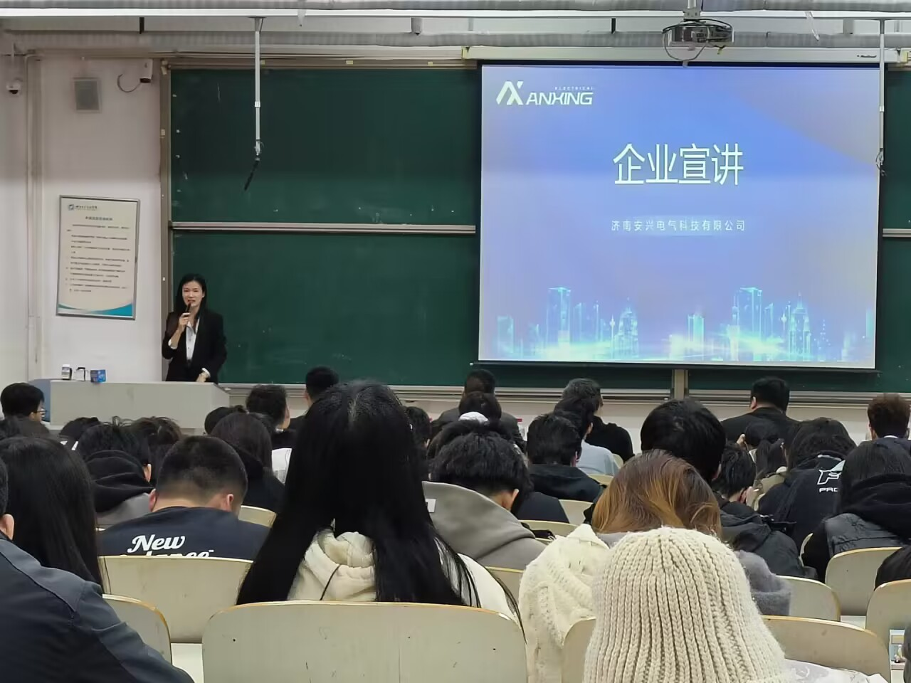 会议伊始,王书记对企业各位领导的到来表示热烈欢迎和衷心感谢,鼓励同学们要珍惜就业机会,结合自身优势,先就业再择业,脚踏实地,并希望同学们志存高远,迈好人生职业生涯的第一步。随后,安兴电气邓总通过播放宣传片,向毕业生介绍了企业的基本概况、发展前景、薪资待遇等,并围绕企业规章制度、招聘人才要求、福利待遇、晋升渠道等同学们关心的问题进行了详尽的解答,引领毕业生深层次、多方面、宽选择的制定就业计划。最后,毕业生积极地与公司领导面对面交流,并耐心的为毕业生答疑解惑,并针对应聘面试做了进一步的指导,让毕业生深入了解面试流程,现场气氛热烈。