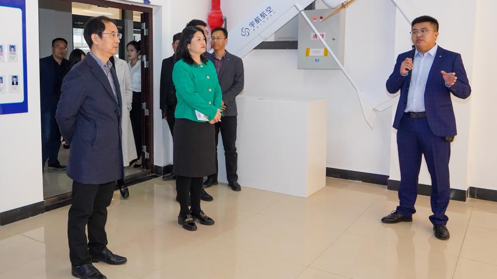 首先,来访领导们一同参观了无人机创新实验室。公司2015级优秀员工、山东宇航航空科技有限公司总经理宋英豪介绍了实验室在无人机人才培养、产学研合作等方面的成果。希望与母校携手共进,砥砺前行,不断把校企合作推向新的高度。