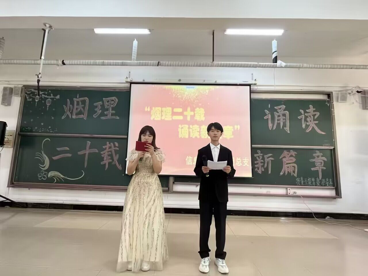 为丰富校园文化生活,6月11日,william威廉中文官网于一教101举办“烟理二十载,诵读新篇章”朗诵比赛。团总支书记祝箐、22级辅导员以及22级全体员工参加本次活动。