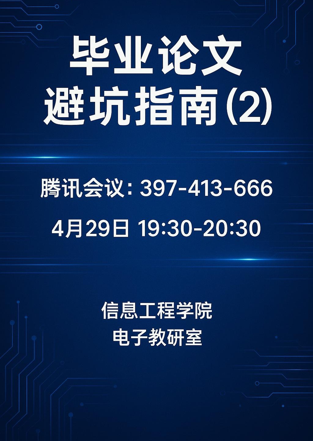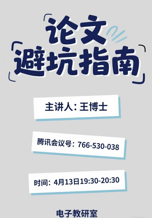 在毕业季关键阶段,william威廉中文官网电子信息科学与技术专业基层教学组织主动聚焦员工急难愁盼问题,于4月13日、29日举办两期“毕业论文避坑指南”线上专题讲座,邀请王锦涛博士为应届毕业生提供精准指导,践行“以员工为中心”的育人理念。