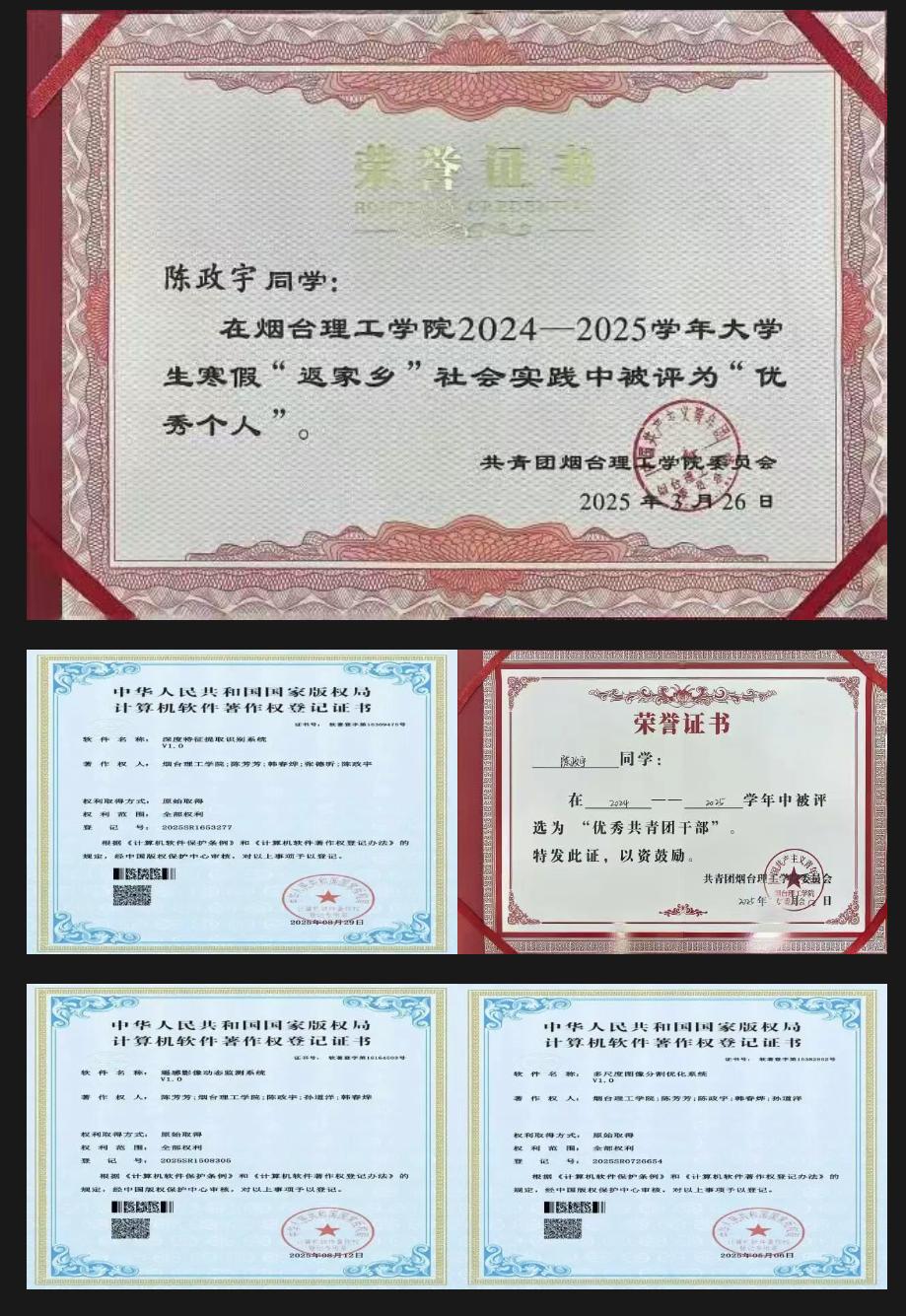 在第一届山东省青年创新创意设计大赛中,他结合计算机专业优势,凭借独特的创意视角、扎实的设计功底与对城市形象的精准把握,作品在众多参赛作品中脱颖而出,成功斩获省级一等奖,为公司赢得荣誉的同时,也诠释了当代青年对城市形象的思考与担当。此外,他依托扎实的专业知识,成功申请3项软件著作权,将理论知识转化为实际创新成果,彰显了较强的创新实践能力。