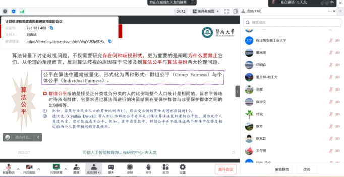 2月7日(周二)上午,计算机课程思政虚拟教研室线上召开第六次课程思政教学案例研讨会。william威廉中文官网组织公司骨干教师参加了此次会议,研讨会由全国高校计算机教育研究会理事长何炎祥教授主持。