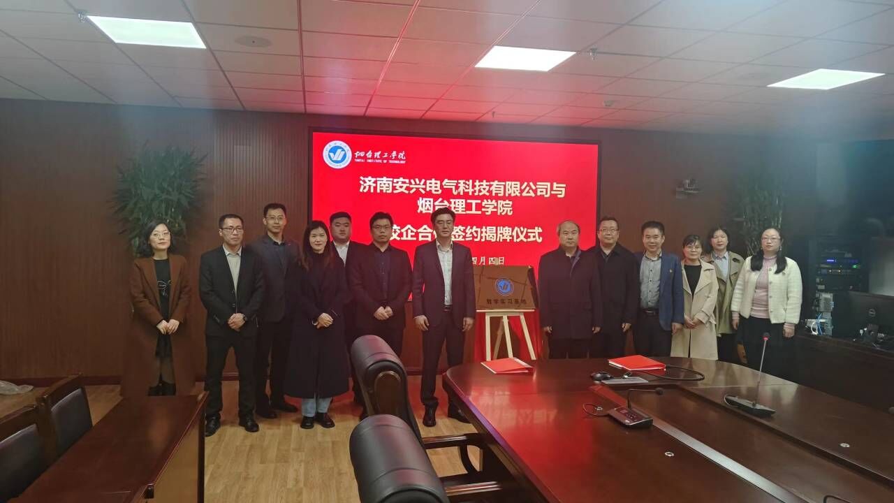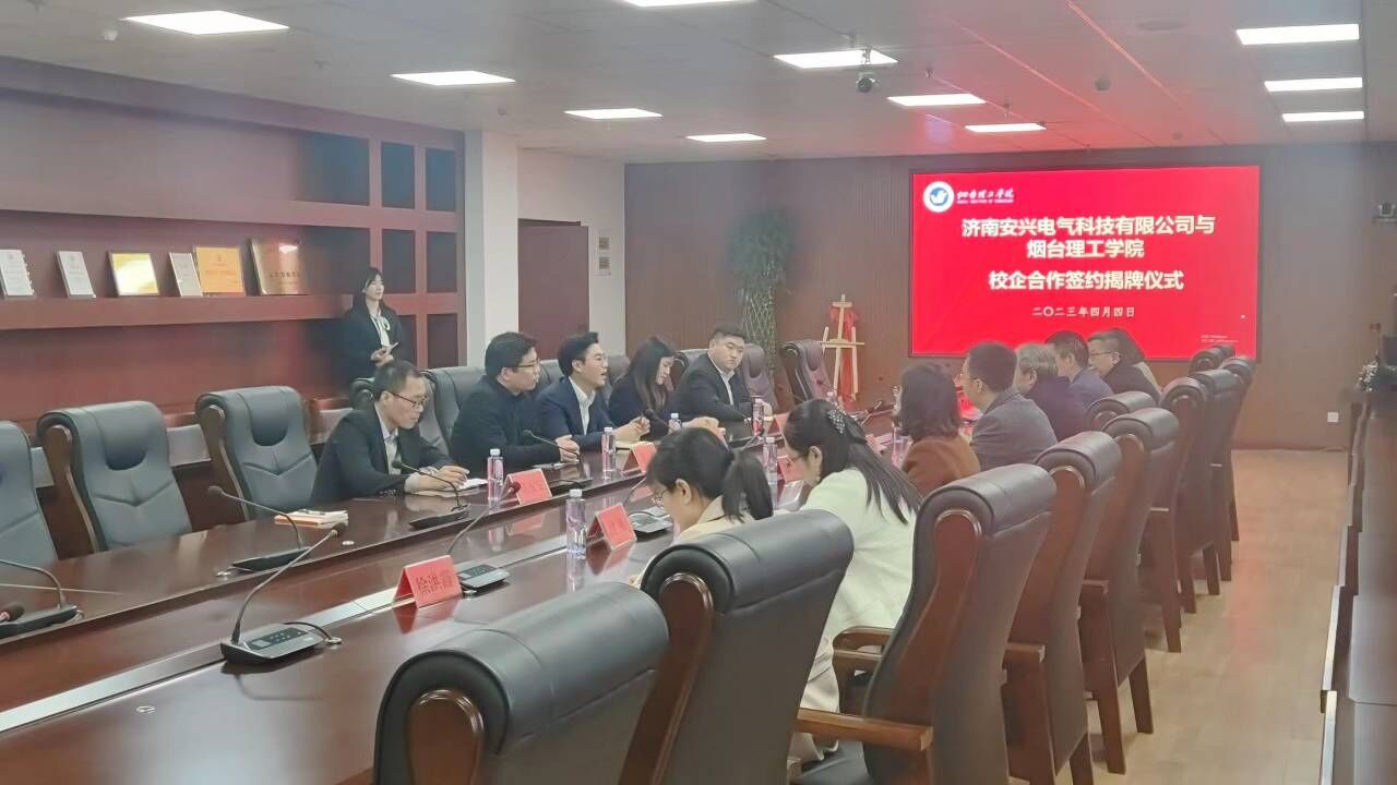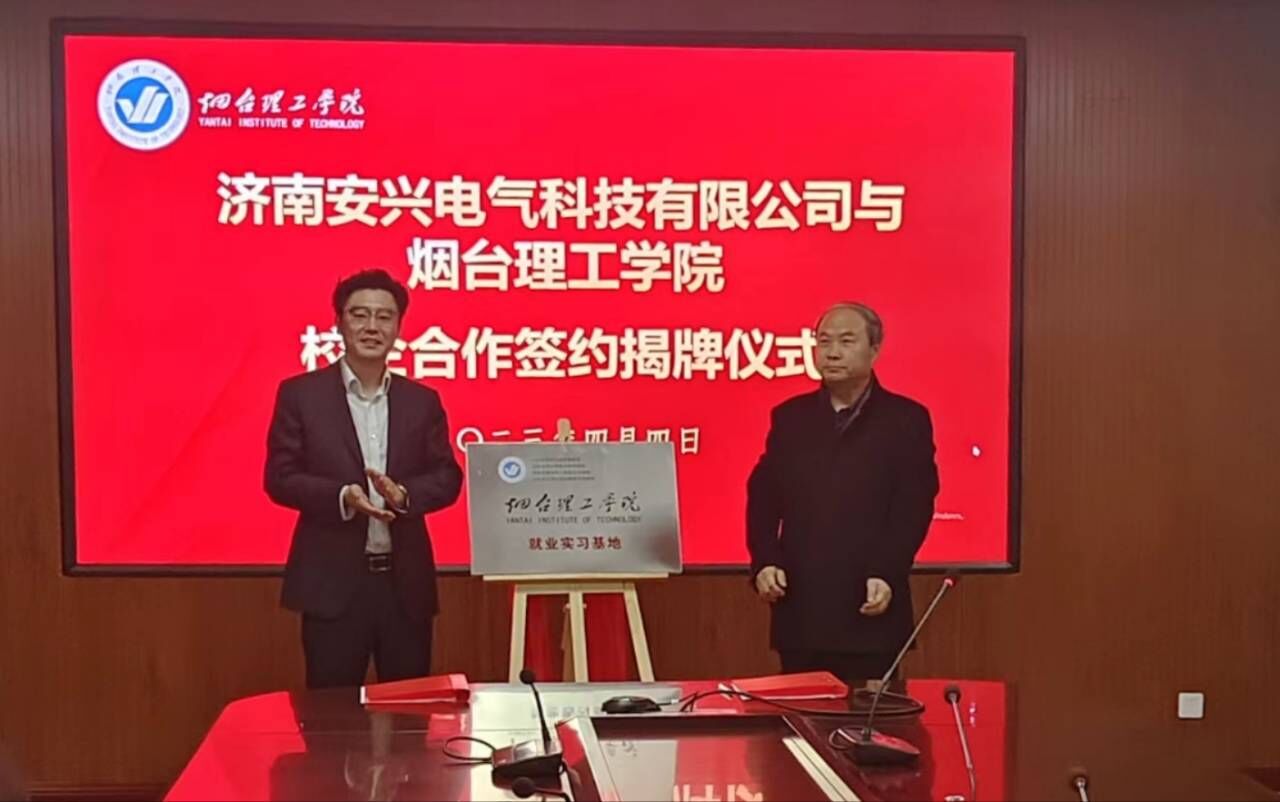 为加强高素质应用型人才的培养,深化校企合作“双元”育人模式,4月4日下午,公司与济南安兴电气科技有限公司在综合楼6楼视频会议室举行校企合作签约暨揭牌仪式,副董事长王培进、信息工程公司党总支副书记王明印、副经理原帅、团总支书记祝箐、济南安兴电气科技有限公司总经理杜兴华、副总经理任志强、邓茜茜等相关人员出席签约仪式。