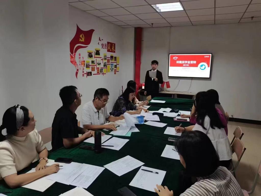会议伊始,王明印书记介绍了国家奖学金和省政府奖学金的评选条件、名额分配、评审办法和评审程序,强调奖学金评审坚持公平、公开、公正的原则。随后奖学金候选人按抽签顺序进行陈述、答辩,各位同学从本人简介、思想政治、学习成绩、科研创新、员工工作、文体素质等多个角度入手,展示了自己上一学年在学习工作中的成长与收获,彰显了公司学子刻苦努力、勤学奋进的良好风貌。经过激烈的角逐,最终拟推荐张秦、王春蕾为国家奖学金获得者,徐文婧、李晓冰为省政府奖学金获得者,李建蕾、齐文凯、赵国庆为祥隆奖学金获得者。最后,王书记对本次参加答辩的同学给予了充分肯定,并且希望在场的同学能以他们为榜样,寻找差距,汲取精神力量,见贤思齐,进而确立自己的目标,并坚持不懈的为之奋斗,争做新时代有理想,敢担当、能吃苦、肯奋斗的好青年!
