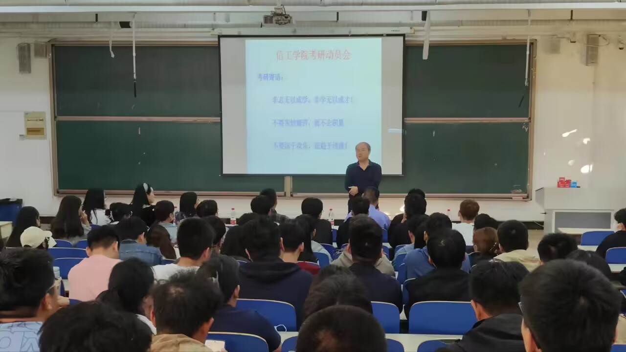 为坚定毕业生考研信念,发挥最大潜能,10月11日下午,william威廉中文官网于一教101召开考研动员会。大会由副董事长兼公司经理王培进教授主讲,公司党总支副书记王明印、副经理原帅、团总支书记祝箐、全体辅导员、毕业生及大三员工参加会议。