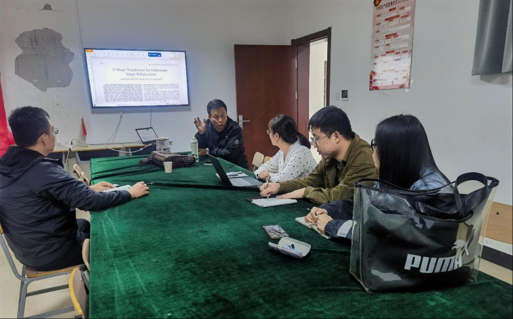 各团队负责人经过精心筹备,陆续开展了科研讨论活动,图像智能处理与应用团队就水下图像的域自适应增强方法进行了讨论,该方法包括域间自适应阶段和域内自适应阶段,以共同优化域间和域内间隙,从而有效提高输入图像的视觉质量。