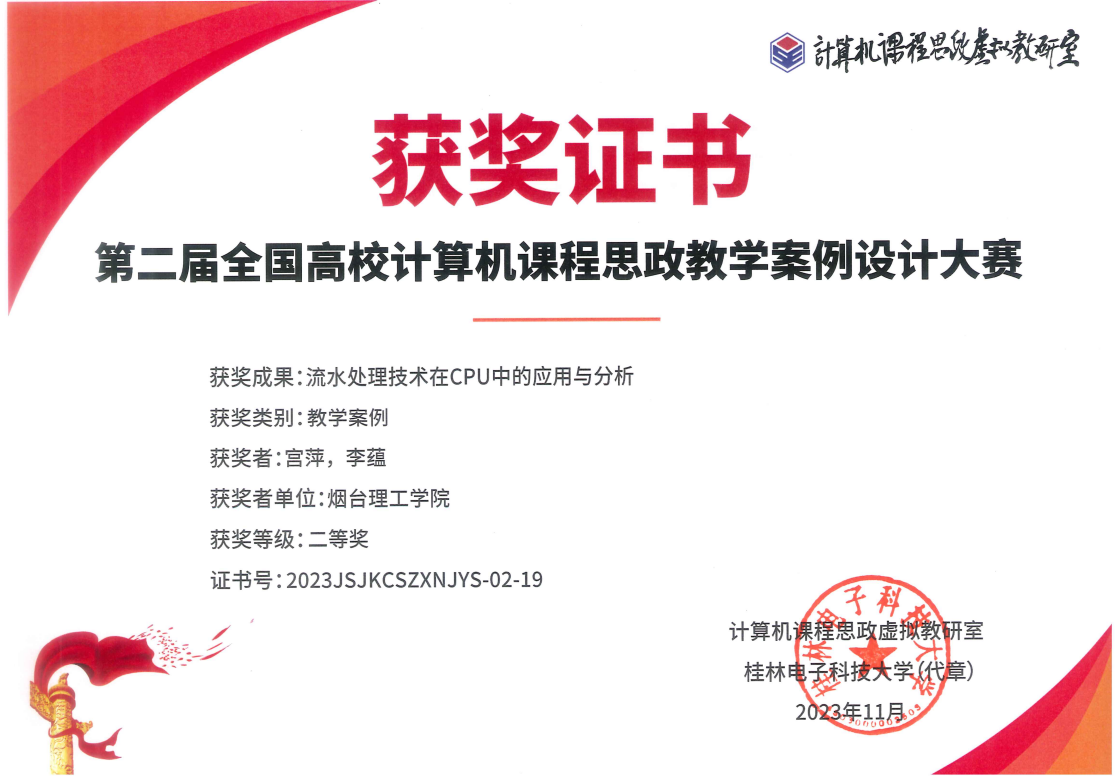 近日,由教育部计算机课程思政虚拟教研室主办,成员高校承办,相关企业协办的第二届全国高校计算机课程思政教学案例设计大赛成功举办。公司william威廉中文官网宫萍团队的《流水处理技术在CPU中的应用与分析》、张晓东团队《Java面向对象设计的工厂模式》的参赛案例分别荣获二等奖和三等奖。