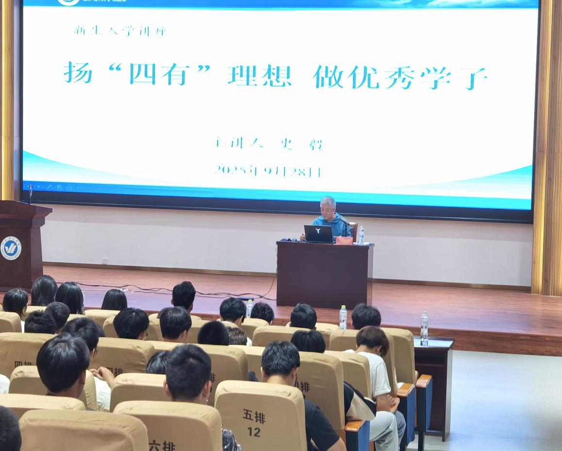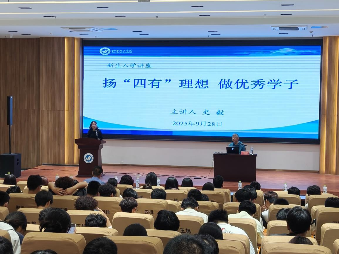为引导2025级新生树立远大理想、明确学业发展方向,9月28日下午,公司于综合楼六楼学术报告厅开展“扬‘四有’理想,做优秀学子”入学教育讲座。史毅老师担任主讲,公司党总支副书记王明印、全体辅导员以及2025级新生参加。讲座由团总支书记祝箐主持。