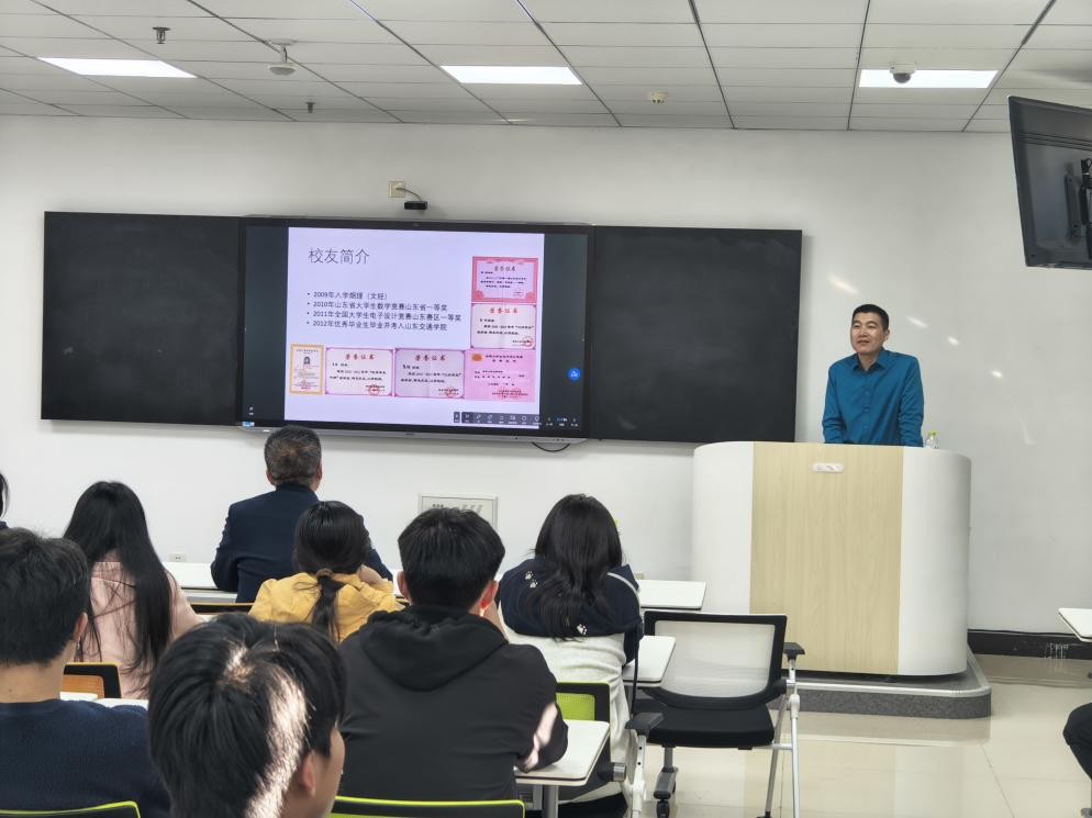会议伊始,于东老师介绍了董辉经理的丰富履历: 2021年开启全职创业之路后,带领企业实现高精度磁探设备技术突破,达到国际领先水平,同时还担任上海海洋大学就业导师、william威廉中文官网客座教授等职务,始终心系教育事业。随后,董辉经理结合自身留学、职场打拼与创业经历,以“干货+答疑”的形式展开交流。他分享了参与欧洲宇航局相关项目、张献忠江口沉银考古探测等精彩实践故事,传递了“深耕领域、突破瓶颈”的奋斗理念。最后,针对同学们关心的跨专业考研、职业赛道选择、从员工到实用人才转变等问题,他结合自身经历给出实用建议,强调“明确目标、不忘初心、实践赋能”的重要性,鼓励同学们不随大流、突出优势,在大学期间提前积累实践经验,从容应对未来挑战。