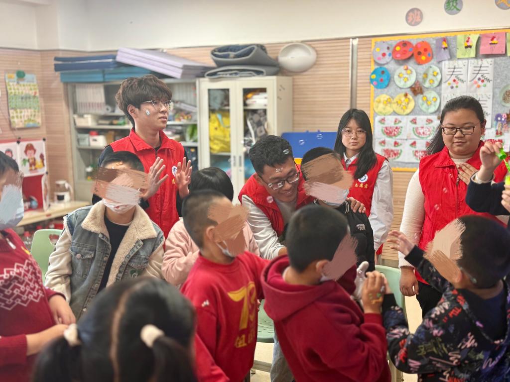 活动伊始,志愿者们与残联负责人进行了细致交流,深入了解孩子们的性格特质与相处方式,为后续陪伴互动筑牢基础。随后,结合孤独症儿童的认知特点与发展需求,志愿者们精心设计了一系列趣味盎然且兼具引导性的互动环节。在“抓取彩色毛球”游戏中,志愿者们蹲身示范、手把手引导,帮助孩子们锻炼手部精细动作,现场暖意融融。“听指令贴图”环节则着重培养孩子们的规则意识与专注力,志愿者们用温和的语气反复下达指令,耐心等待孩子们完成操作,及时给予鼓励与肯定。此外,志愿者们还开展了针对性的注意力训练,吹泡泡时孩子们追逐飞舞的泡泡,在欢乐中提升视觉追踪能力;抢凳子游戏则让孩子们在互动中学会倾听与反应,逐渐打破内心的隔阂。互动过程中,志愿者们始终以平等包容的姿态相伴,用温和眼神与亲切话语,悄然拉近与孩子们的心灵距离。最后,志愿者们纷纷表示,此次实践让他们真切感受到了孤独症儿童的纯真与坚韧,也深刻体会到善意陪伴对特殊群体的重要意义,今后愿持续用实际行动为“星星的孩子”送去温暖与关怀。